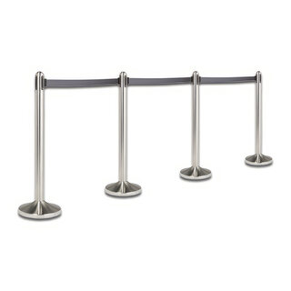 Leitsystem aus rostfreiem Stahl, einziehbares Band in grau, mit Fußteil, 100 cm