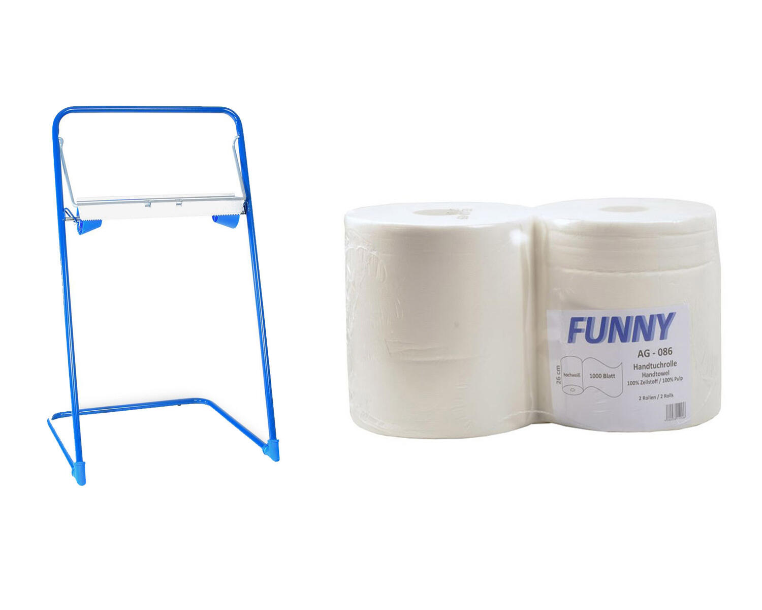 Bodenständer für Putztuchrollen inkl. 2 x 26cm breite 1000 Blatt Rollen